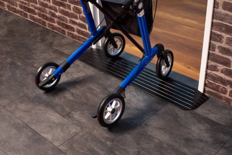 Dank einer Türschwellenrampe kann eine Türschwelle wieder zu einem überwindbaren Hindernis werden, z. B. mit einem Rollstuhl oder einem Scooter. Diese Türschwellenrampe ist für fast jeden Zweck geeignet. Egal, ob Sie sie mit Ihrem Scooter, Elektrorollstuhl oder Fahrrad benutzen wollen, alles ist möglich. Die Türschwellenrampee besteht zu 80% aus recyceltem Gummi und zu 20% aus reinem Gummi und hat eine maximale Tragfähigkeit von 2500 kg. Diese preisgünstige Schwellenhilfe ist eine relativ preiswerte Lösung. Damit dieses Modell preislich besser abschneidet, ist es kürzer und damit steiler als z. B. die Comfort Line-Schwellenhilfe. Die Budget Türschwellenrampe fällt nicht auf 0 mm ab, sondern auf 6-16 mm (je nach gewählter Höhe). Dadurch ist dieses Budget-Modell weniger geeignet für Fahrzeuge mit kleinen Rädern.