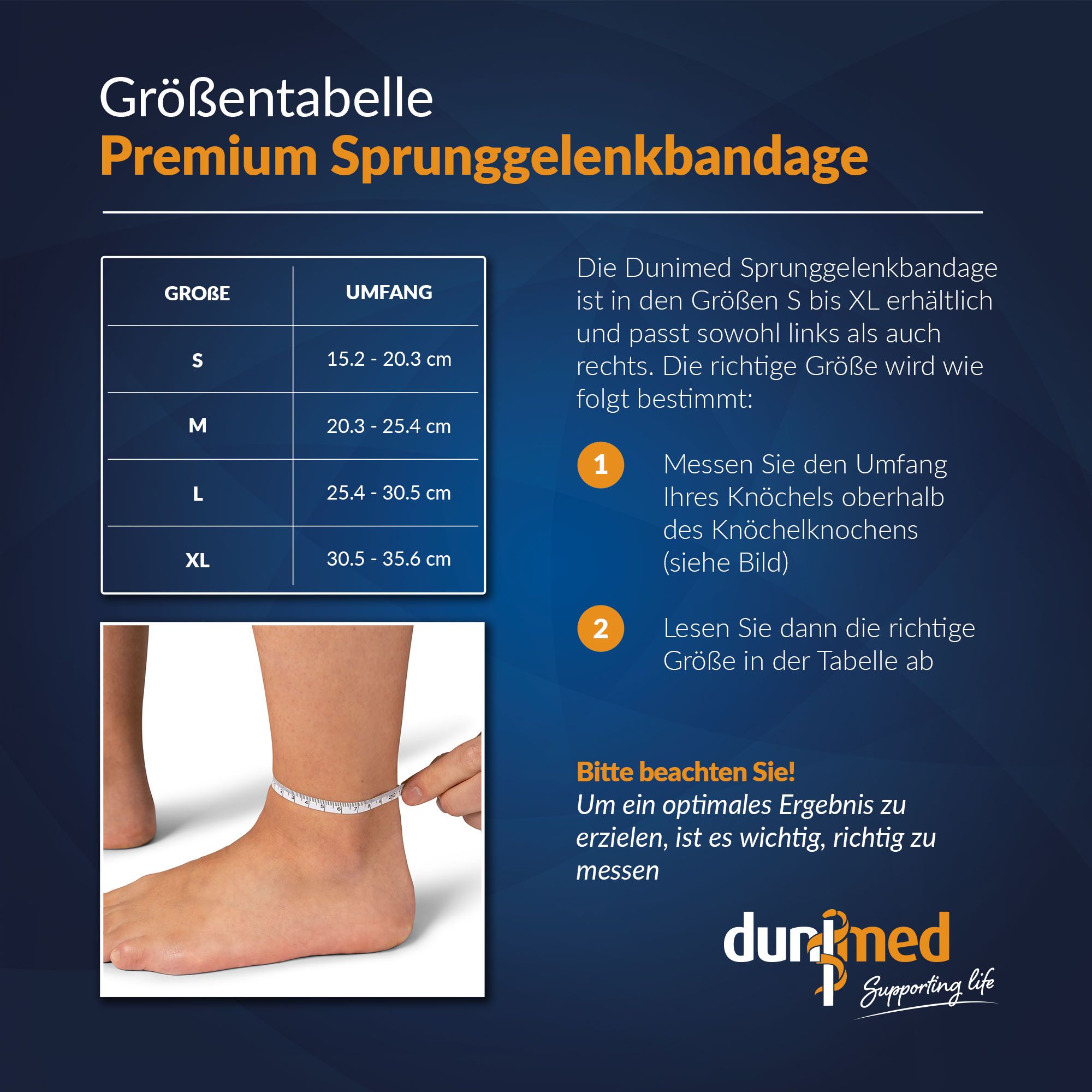 Mit der Dunimed Premium Sprunggelenkbandage geben Sie Ihrem Sprunggelenk zusätzliche Stabilität, genau dann, wenn Sie sie brauchen. Die Bandage stützt und stabilisiert das gesamte Sprunggelenk. Dank des gestrickten Materials und des gezielten Drucks werden Schwellungen reduziert und Sie genießen dennoch maximalen Tragekomfort.