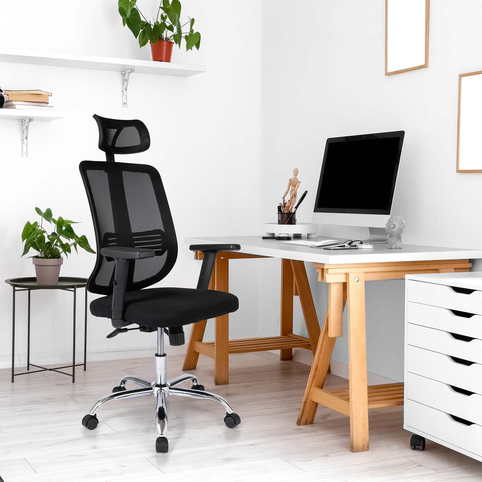 Jeder, der zu Hause oder im Büro arbeitet, verdient eine gute ergonomische Haltung. Der Ergodu Bürostuhl mit verstellbaren Armlehnen bietet diese Unterstützung mit integrierter Lendenwirbelstütze. Außerdem kann die Rückenlehne dieses Bürostuhls in jeder Position fixiert werden.
