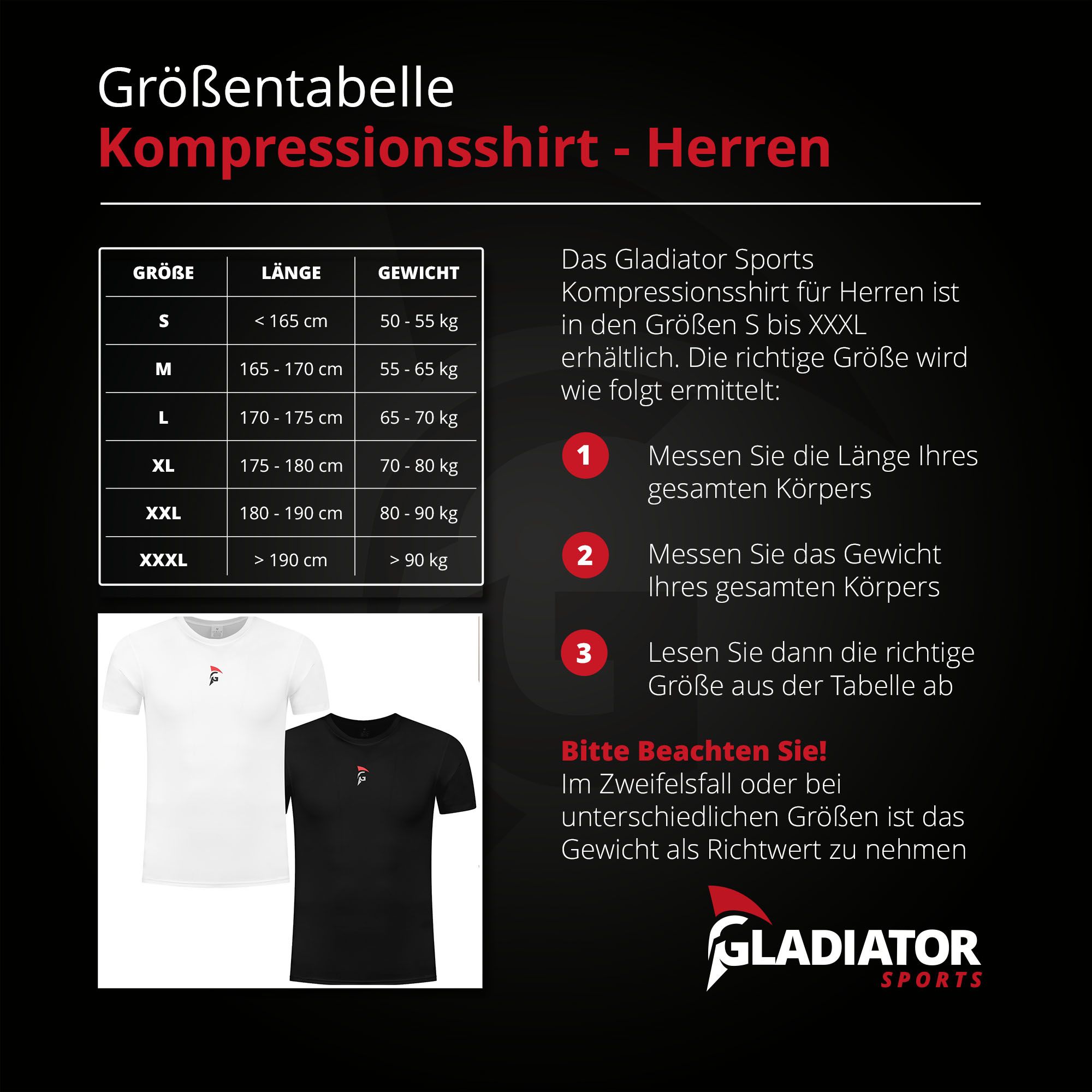 Gladiator Sports Kompressionsshirt – Herren (schwarz und weiß) weißes Hemdkragen und Logo