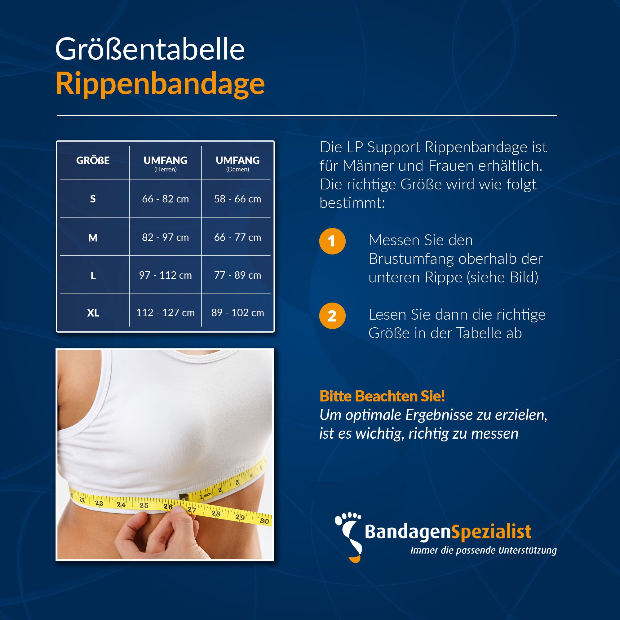 Die Rippenbandage ist in einer Ausführung für Männer und Frauen erhältlich und lässt sich einfach mit Klettverschluss schließen. Dank des weichen Materials und der flachen Verarbeitung ist die Bandage unter der Kleidung unauffällig zu tragen. So kann die Bandage auch bei der Arbeit oder bei alltäglichen Bewegungen bequem verwendet werden.