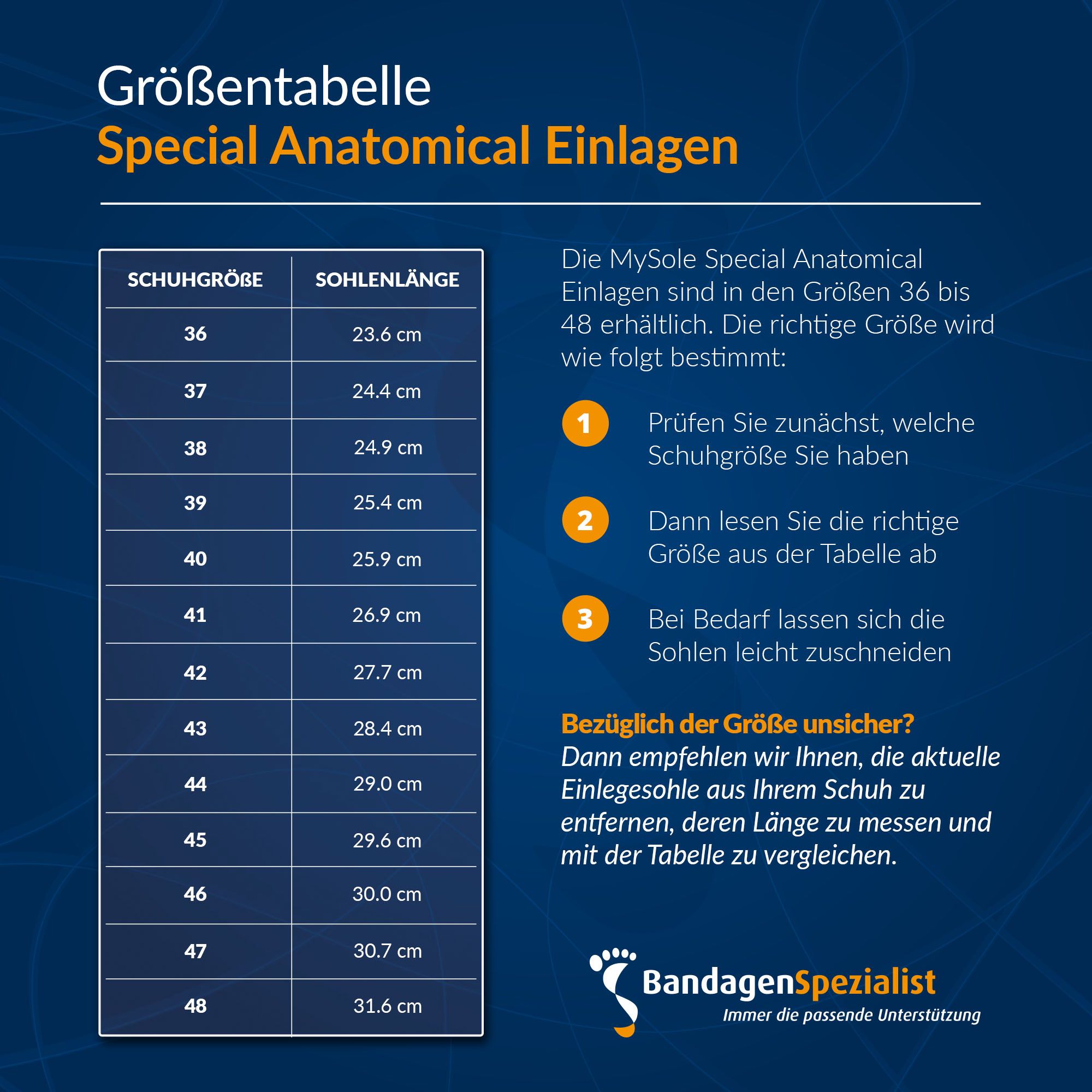 Die MySole Anatomical Einlagen bieten gezielte Unterstützung für Fersen, Mittelfuß und Vorfuß. Die stabile Kunststoff-Fersenschale sorgt für Stabilität, während das EVA-Basisprofil und die Clima Tex-Oberfläche für Komfort und Feuchtigkeitsaufnahme sorgen.