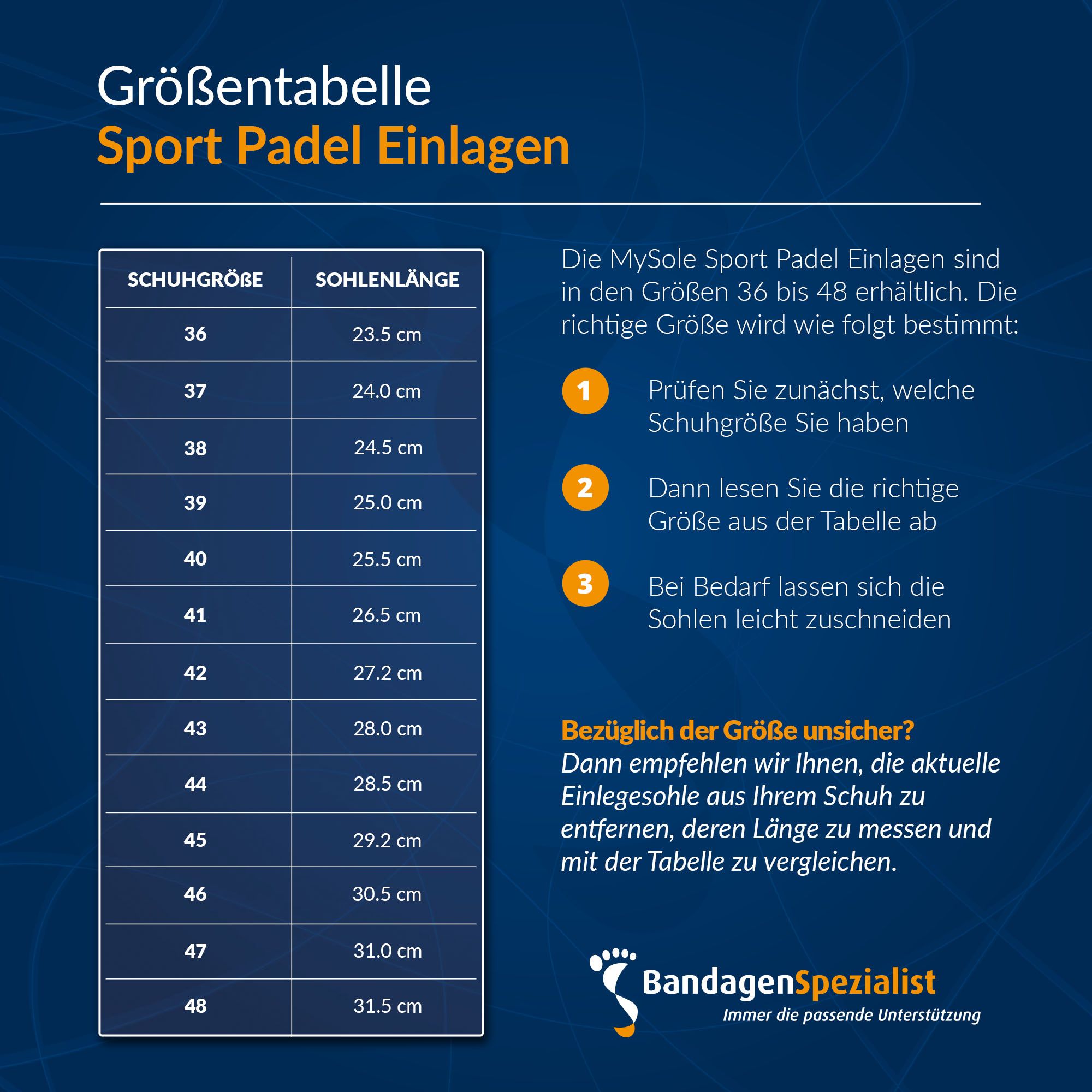 Diese Einlagen sind nicht einfach nur Sport-Einlegesohlen, sondern wurden in Zusammenarbeit mit begeisterten Padel-Spielern und Fußspezialisten entwickelt. Erhältlich in den Größen 36 bis 48 und einfach auf die perfekte Passform zuschneidbar. Eine intelligente Aufwertung für jeden Padel-Schuh.