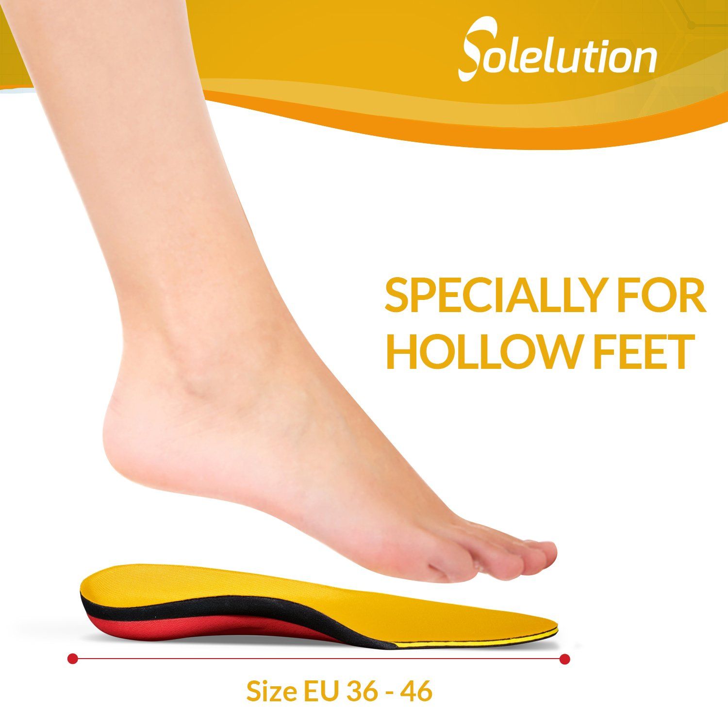 Die Solelution Hohlfuß Einlagen sind für jeden Schuh geeignet und erhältlich in den Größen 36 – 46.