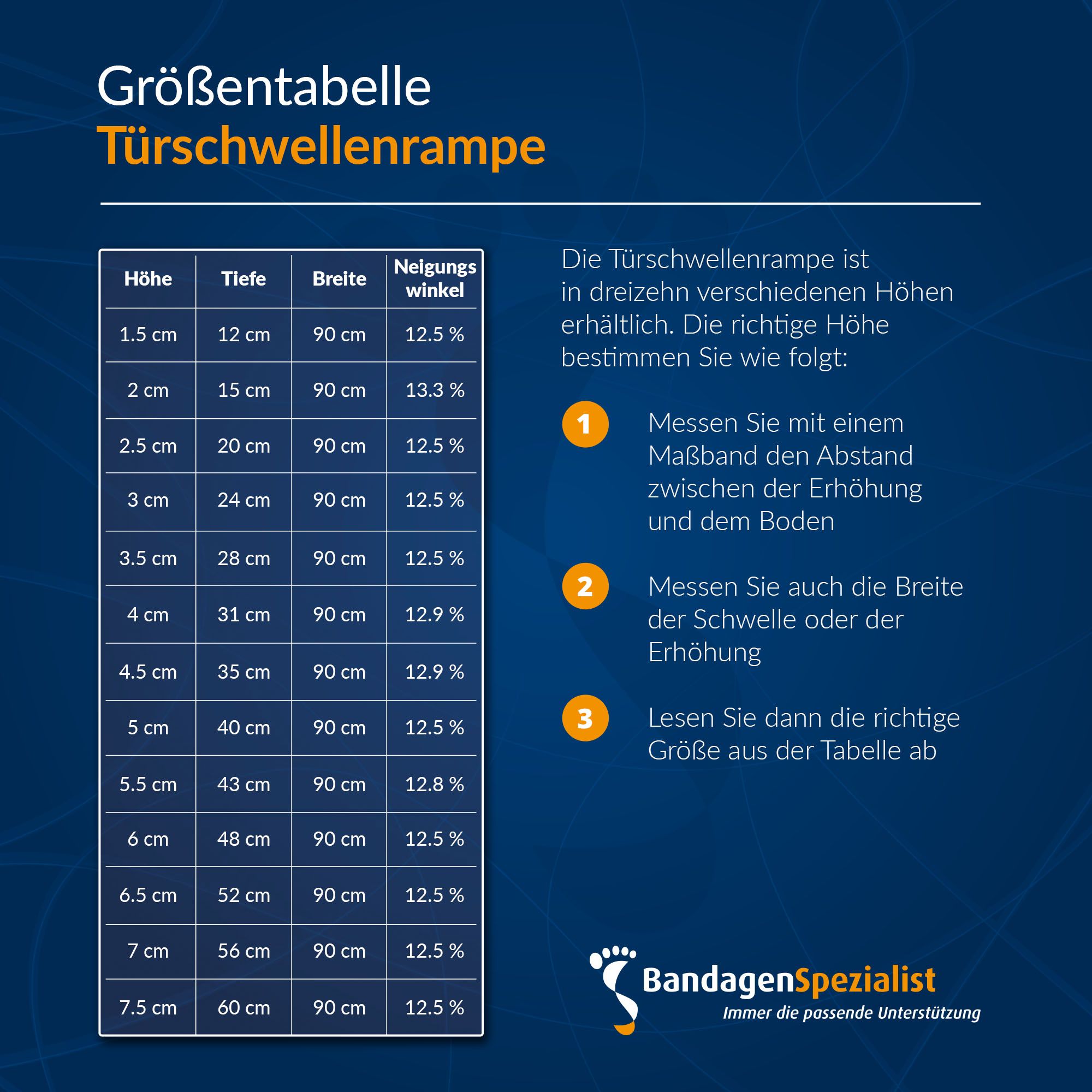 Diese 7,5 cm hohe Türschwellenrampe macht den Höhenunterschied für Räder jeder Größe zugänglich. Dank des cleveren Designs mit schrägen Seitenflächen können Sie aus jeder Richtung einfach und sicher darauf fahren, ohne heben oder hebeln zu müssen. Durch den Neigungswinkel der Türschwellenrampe und den Gefälle von fast 0 mm ist sie für jedes Hilfsmittel oder Transportmittel geeignet.